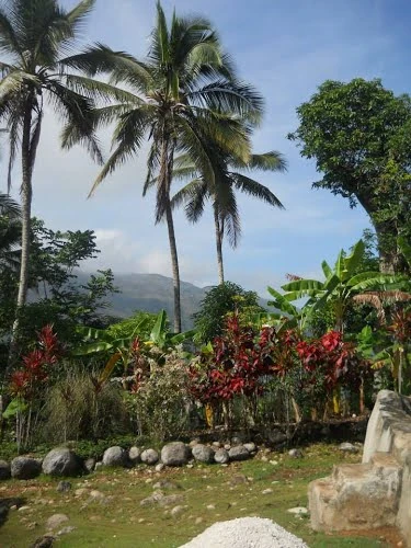 To the east of the village lies the prominent hill known as Morne Bleu, which features several caverns containing curiosities and other evidence of the Taíno natives who once inhabited the region.