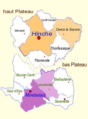 Central Plateau is split into two regions, haut Plateau (Hinche and CLS) and bas Plateau (Mirebalais and Saut-d'Eau).