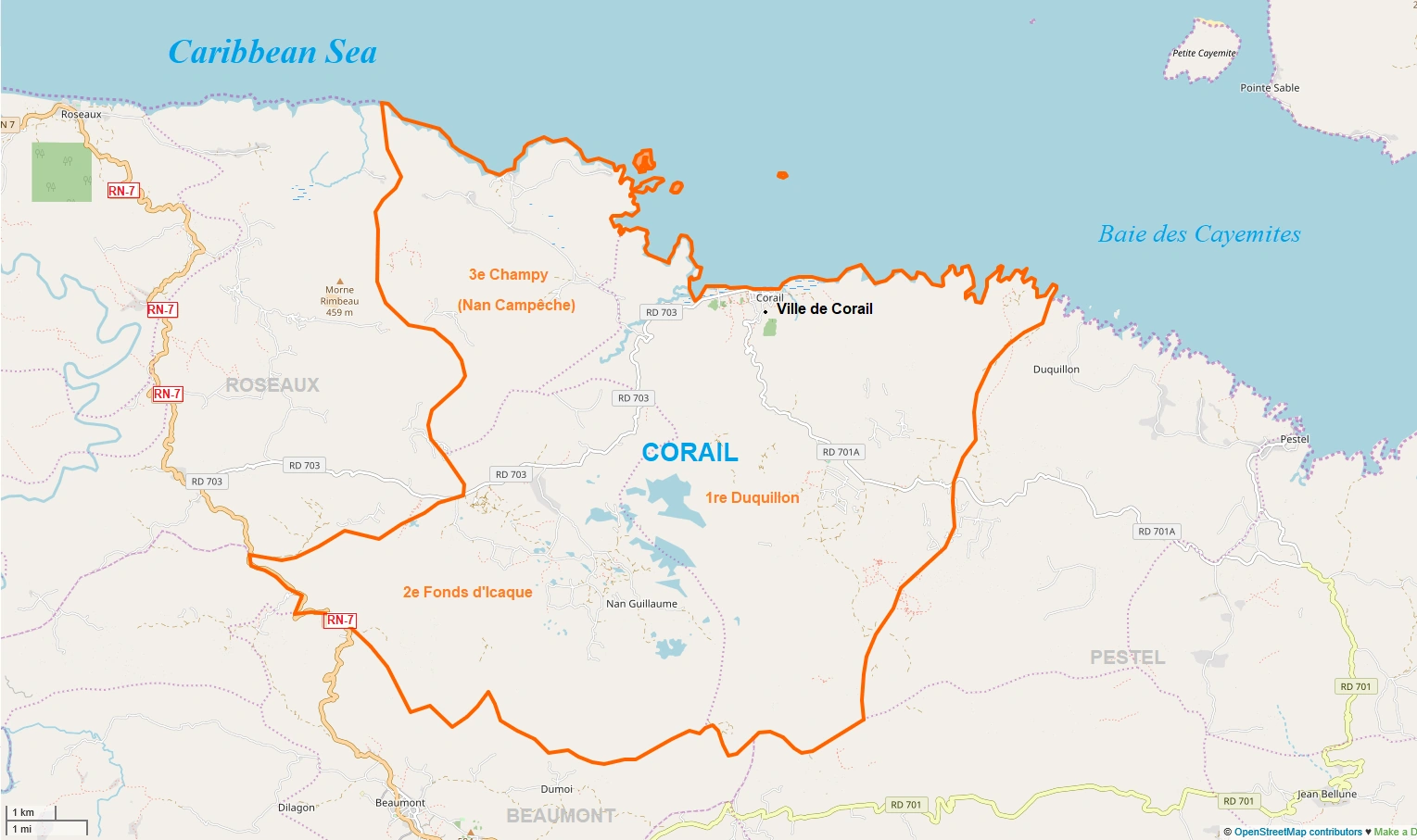- 2ème Section – Fond-d’Icaque has a mix of mountainous and lowland terrain, with a largely agrarian economy supplemented by small-scale commerce. It is slightly more accessible than the outer sections, and some areas benefit from proximity to footpaths or secondary roads leading to the town center. The section is known for its cultural gatherings, local leadership structures, and persistence in the face of environmental and economic hardship.