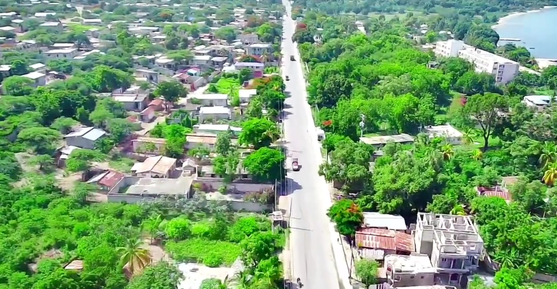 Aerial view of the Délugé locality along Route Nationale 1, linking Saint-Marc and Montrouis.