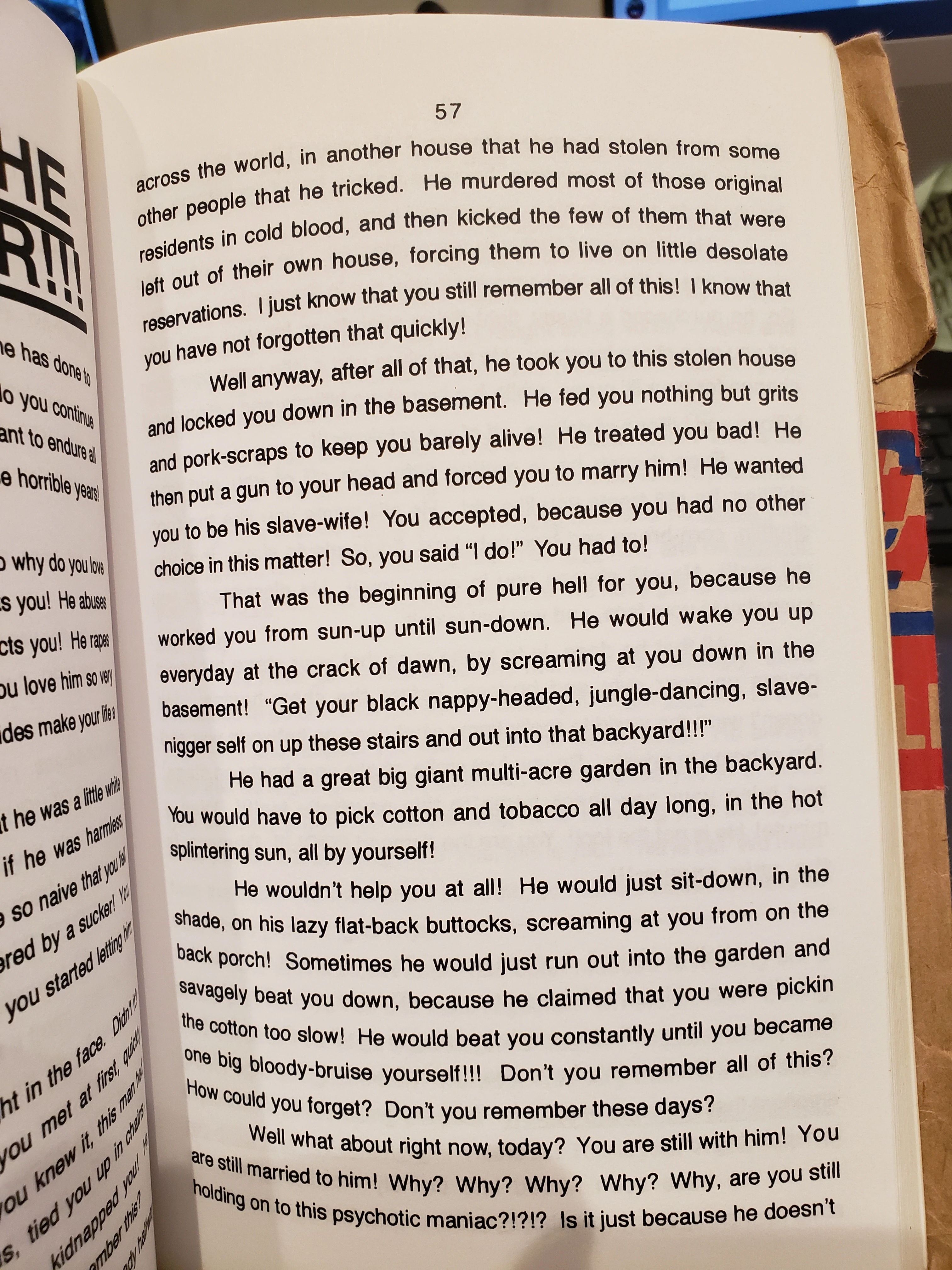 Nou te fòse nan maryaj ki pa sen ak yon popilasyon abizif, derespektan, sikotik, ki gen move kè, ki gen lespri dyabolik.