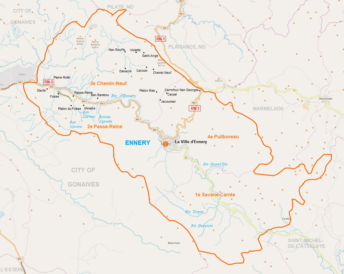 | PRE | 2ème Section Passe-Reine (ou Bas Ennery) | 13,361 | Aufilier, Beaumont, Beauséjour, Belami, Boca, Boutique, Brillant, Ca Joseph, Ca josephi, Ca Reguy, Carriac, Cerca, Descahos, Du Fossé, Manime, Ministre, Mosemberg, Nan Gorge, Nan Platon, Nan Source, Navitre, Pascal, Passecot, Passe Reine, Platon du Fossé, Sterlin, Trompette, Vincent. | |