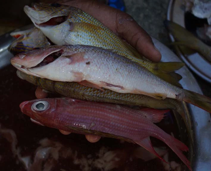 In addition to fresh seafood, local production includes salted and dried fish, goats, pigs, and chickens, and a small volume of carets (hawksbill turtles) and scales, which are occasionally sold despite legal and environmental concerns.