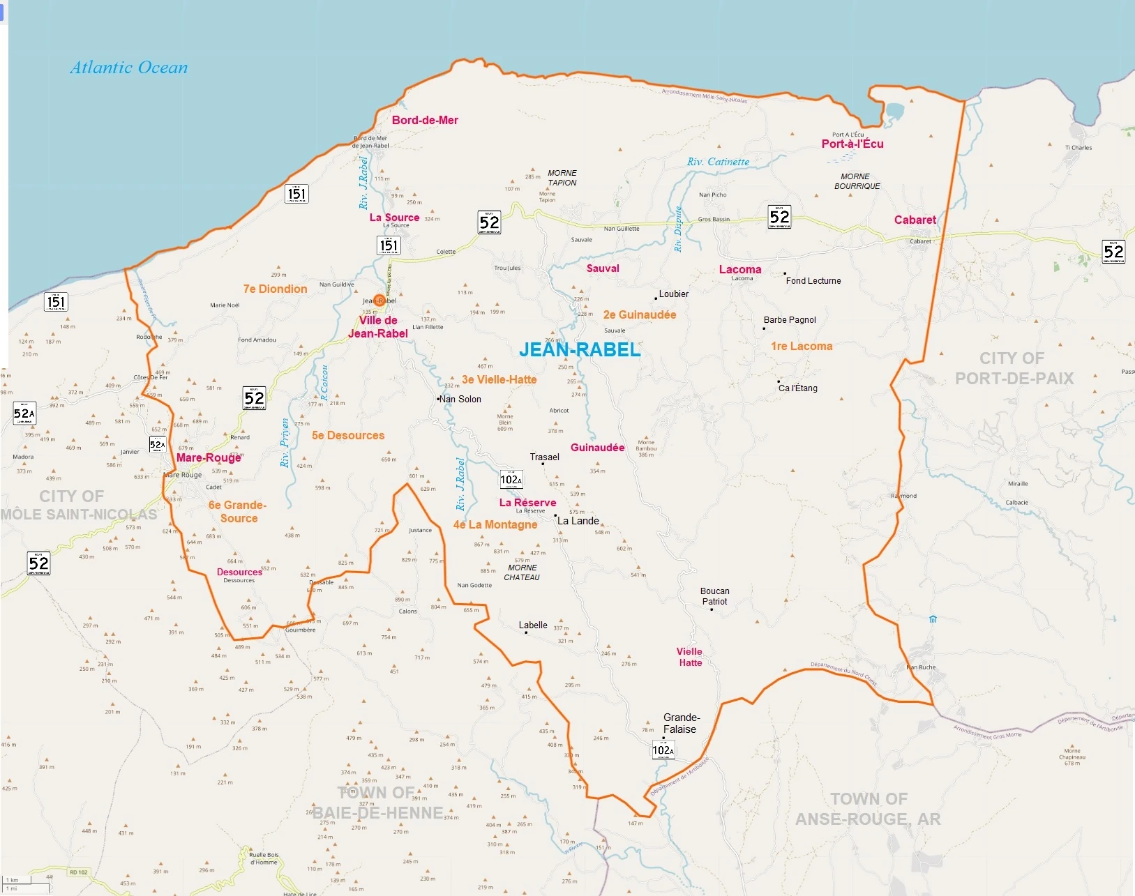 | VIH | 3ème Section Vielle Hatte | Rural section | 23,701 | Abricot, Bord-de-Mer-de-Jean-Rabel, Colette, Fond Cirouelle, Fond Toussaint, Fond Zombi, Grande-Falaise, Guinaudée, Habitation Morne Bourrique, Jean-Louis, La Lande, La Reserve, Nan André, Nan Fillette, Nan Foach, Nan Foubie, Nan Massacre, Nan Solon, Pointe-Saline, Source-Aniesse, Source-Blanche, Trasaël, Valoir, Vielle Hatte, Vieux Caille, Vieux-Place |
