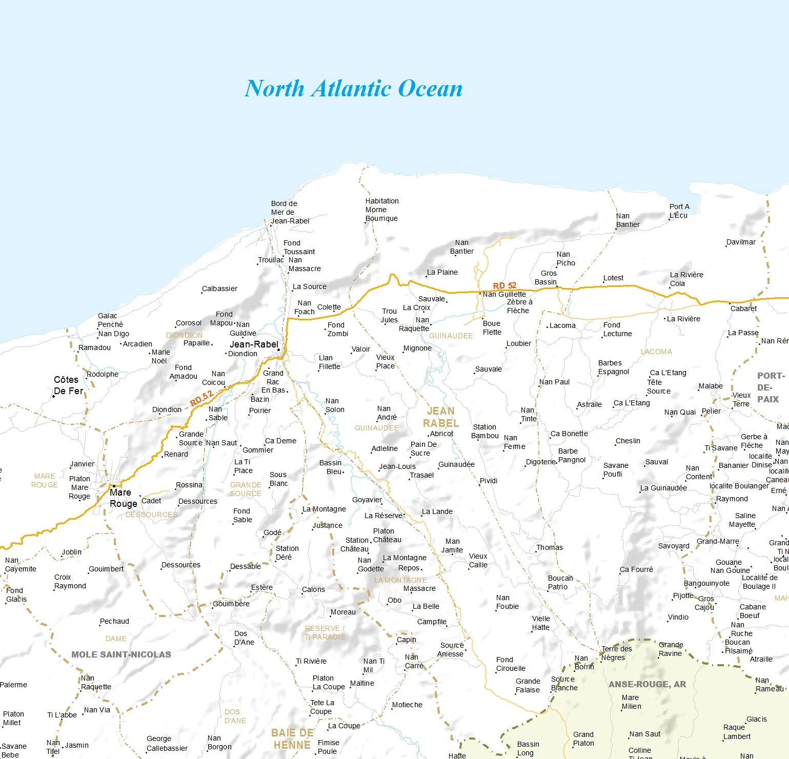 With roughly 40 kilometers (25 miles) of Atlantic coastline, a modest port of entry, and road connections to Port-de-Paix, Môle Saint-Nicolas, and the Artibonite, the commune connects mountain villages to lowland markets. Despite this strategic location, Jean-Rabel remains isolated and under-resourced, earning it the nickname “The Far West” due to poor infrastructure and limited state presence.