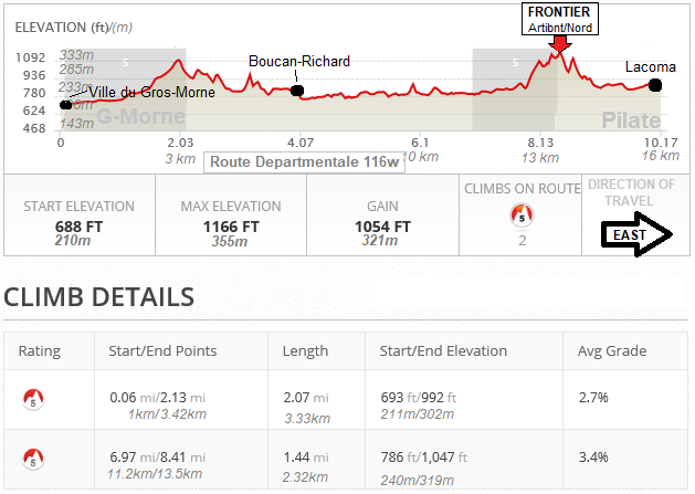 Route 116 elevation chart