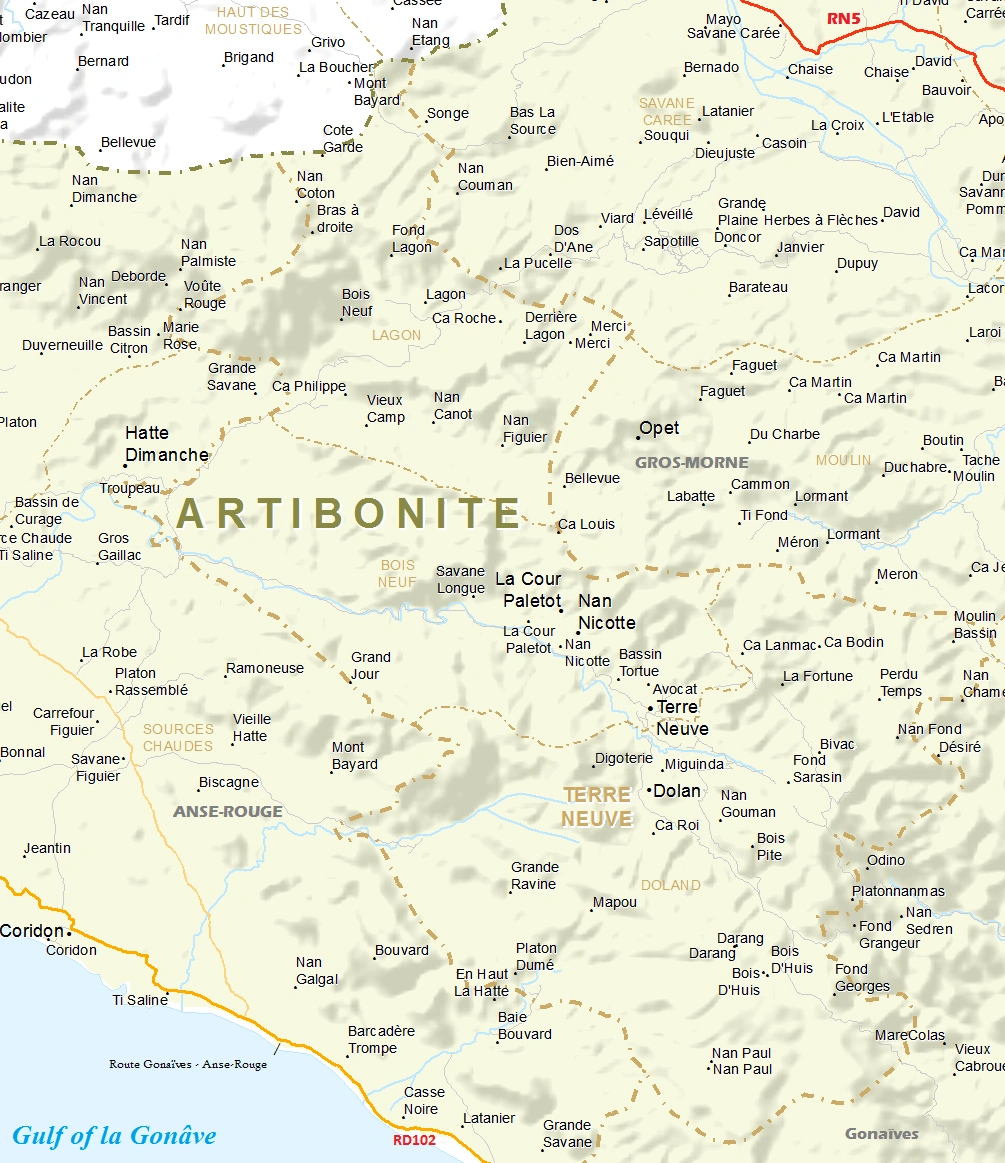 | LAG | 3ème Section Lagon | Rural | 10,571 | Bois-Neuf, Bras-à-droite, Ca Philippe, Ca Roche, Cote-Garde, Derrière-Lagon, Fond-Lagon, Lagon, Merci, Nan Canot, Nan Figuier, Vieux-Camp, Voûte-Rouge | Lagon; Terre Neuve, Haiti |