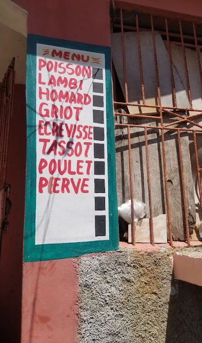 At Vanise Bar-Restaurant, the menu is painted right on the wall, listing local favorites from poisson and lambi to griot and tassot.